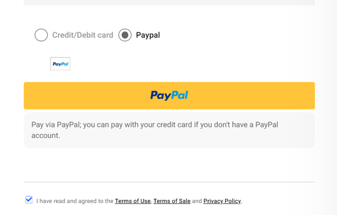 Definitely! Once you fill out the checkout form with your information, scroll down to Payment Details, tick the "I have read and agreed to the Terms of Use, Terms of Sale and Privacy Policy" checkbox, and then select PayPal.